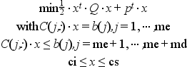 [x,lagr]=qld(Q,p,C,b,ci,cs,me)